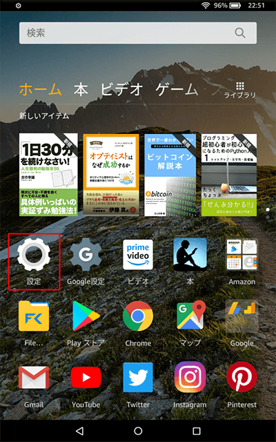 1.ホーム画面から「設定」を開く